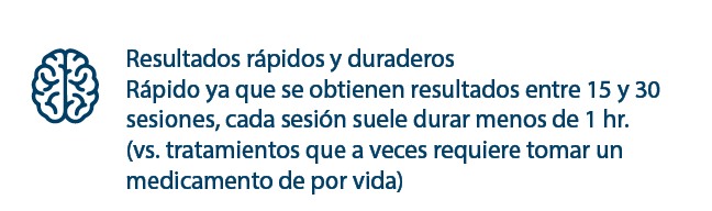 Rápido ya que se obtienen resultados entre 15 y 30 sesiones, cada sesión suele durar menos de 1 hr. (vs. tratamientos que a veces requiere tomar un medicamento de por vida).